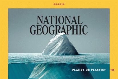 Con el sencillo titular Planet or plastic (¿Planeta o plástico?), la publicación muestra una creación del artista mexicano Jorge Gamboa que fusiona un iceberg con una bolsa de plástico.