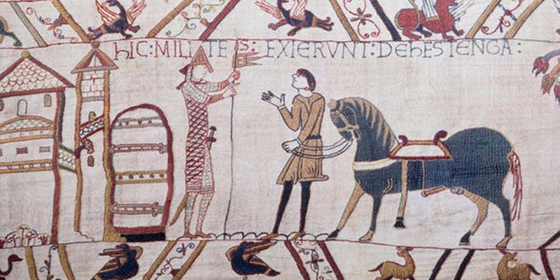 El llamado Tapiz de Bayeux es una tela de unos 70 metros de largo que fue bordada en el siglo XI, y cuyas imágenes representan la conquista de Inglaterra por los normandos.