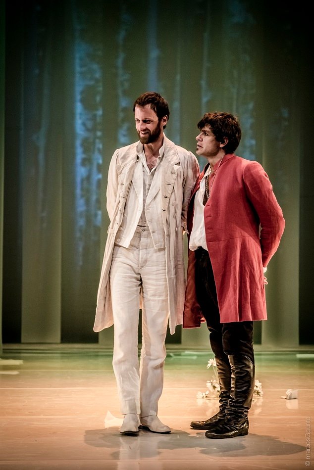 Hemos hablado de muchos personajes, porque estamos ante un reparto enorme de esos que hacen la delicia del aficionado y tan poco se prodigan últimamente. 17 actores y actrices sobre las tablas. Un despliegue de personajes secundarios donde todos son protagonistas y en el que todos están de campeonato, actuando bien y cantando mejor. No podemos nombrarlos a todos pero Iván Hermes es un perfecto Orlando y Edu Soto hace un gran Jacques, su hermano melancólico contrapunto del buenismo general. Gran pareja la de Parragón y Audrey, buen doblete de duques el de Pedro Miguel Martínez, gran conjunto de acompañantes los que rodean al buen Federico en su exilio boscoso. Impresionantes gorgoritos los de Verónica Ronda en esa fantasmal Himene y un gran logro lo que ha conseguido del reparto como asesora vocal. La escena que abre la segunda parte con el bufón y el pastor pescando y discutiendo es de antología.
