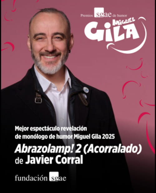 Javier Corral, se alza con el Premio al Mejor espectáculo revelación, II Premio SGAE Miguel Gila 2025 con el espectáculo “Abrazolamp! 2 (Acorralado)”. La secuela del exitoso monólogo de Javier, acerca del suicidio y revela su capacidad de poner humor donde antes hubo silencio, romper prejuicios y hacer comedia desde la sensibilidad, la verdad y el riesgo.