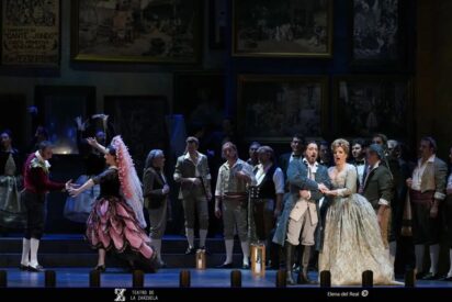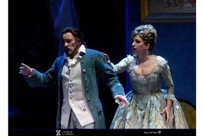 Tal contexto conceptual y escenográfico perjudicaría a cualquier partitura, y en este caso lo hace. La dirección musical de Álvaro Albiach naufraga completamente. Los coros suenen como estruendos descompasados y a los cantantes apenas se les entiende. Raquel Lojendio no estuvo en su sitio, y Alejandro Roy y César San Martín como el capitán Fernando y el torero Paquiro tampoco nos parecieron logrados. Mejores la Pepa de Mónica Redondo en ‘Goyescas’ y Lidia Vinyes-Curtis como Trujumán en ‘El Maese’. Destaquemos el vestuario de Jesús Ruiz y las coreografías de danza española de Olga Pericet, no así las de las pobrecitas momias alegóricas.