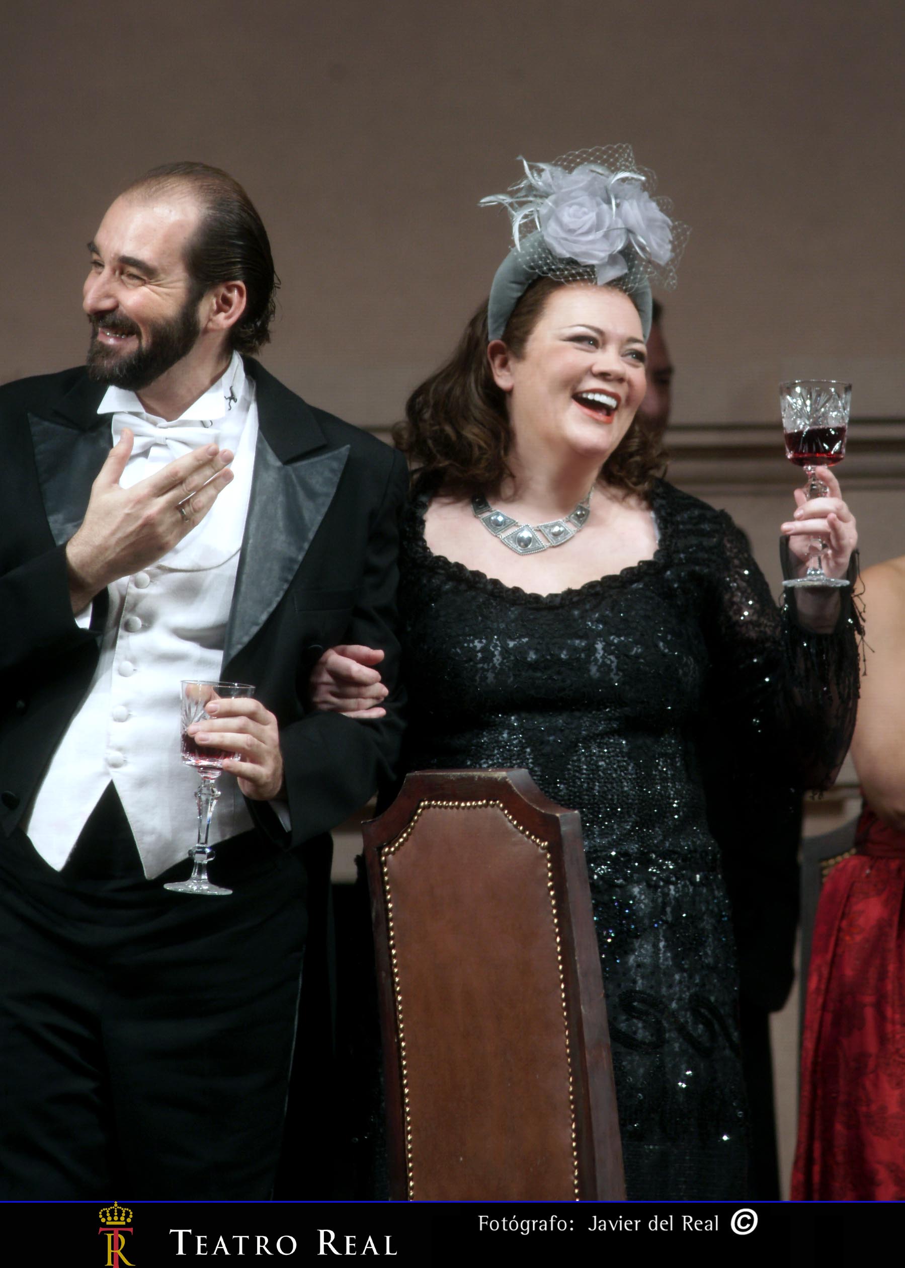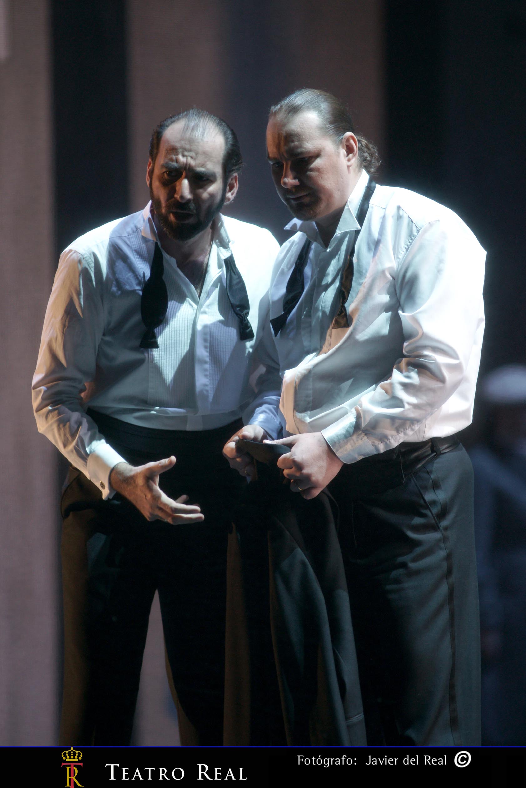 Teodor Currentzis volvió a estar a la altura de su creciente popularidad. Efectista, espoleta de contrastes, torbellino en el podio, resulta atractivo para el público aunque convenza menos a los puristas. Es el niño bonito de Mortier, y fue el alma de la representación, elevando a la Orquesta Titular del Teatro Real (Orquesta Sinfónica de Madrid), que ya tocó esta obra verdiana en el Teatro Real en 2004, a dimensiones de alto nivel. Repetían en el Teatro Real casi todos los protagonistas de la producción de Tcherniakov en la capital francesa: la soprano lituana Violeta Urmana (Lady Macbeth) —en el Real ha cantado La Gioconda, Cavalleria rusticana, Un ballo in maschera y Tosca— el barítono griego Dimitris Tiliakos (Macbeth), los bajos rusos Dmitry Ulianov (Banco) y Yuri Kissin y los tenores italianos Stefano Secco (Macduff) y Alfredo Nigro (Malcolm). Completaban el reparto de Madrid , y los cantantes María Dolores Coll, Rafaelle Pisani y Celia Martos Nieto.
