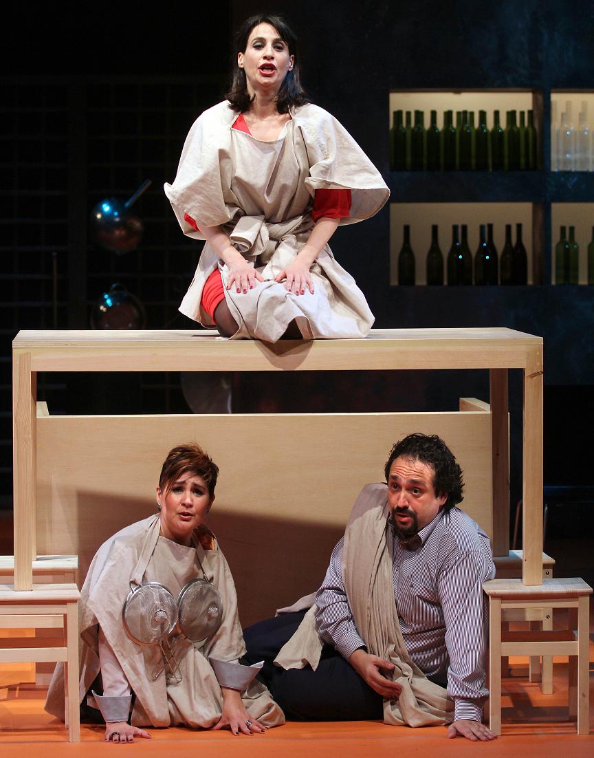 Un argumento muy endeble sirve de pretexto a una antología de momentos célebres de sus óperas, continuamente salpimentadas de chistes, que termina en un popurrí estrambótico. Los méritos de los cantantes sucumben a la tontería de sus personajes. La música termina en anécdota y la zafiedad se impone en estereotipos inaceptables y momentos de tan mal gusto como la larga escena entre tenor y soprano cantando ambos con la boca llena y escupiéndose a la cara y al torso la comida masticada. Una pena.