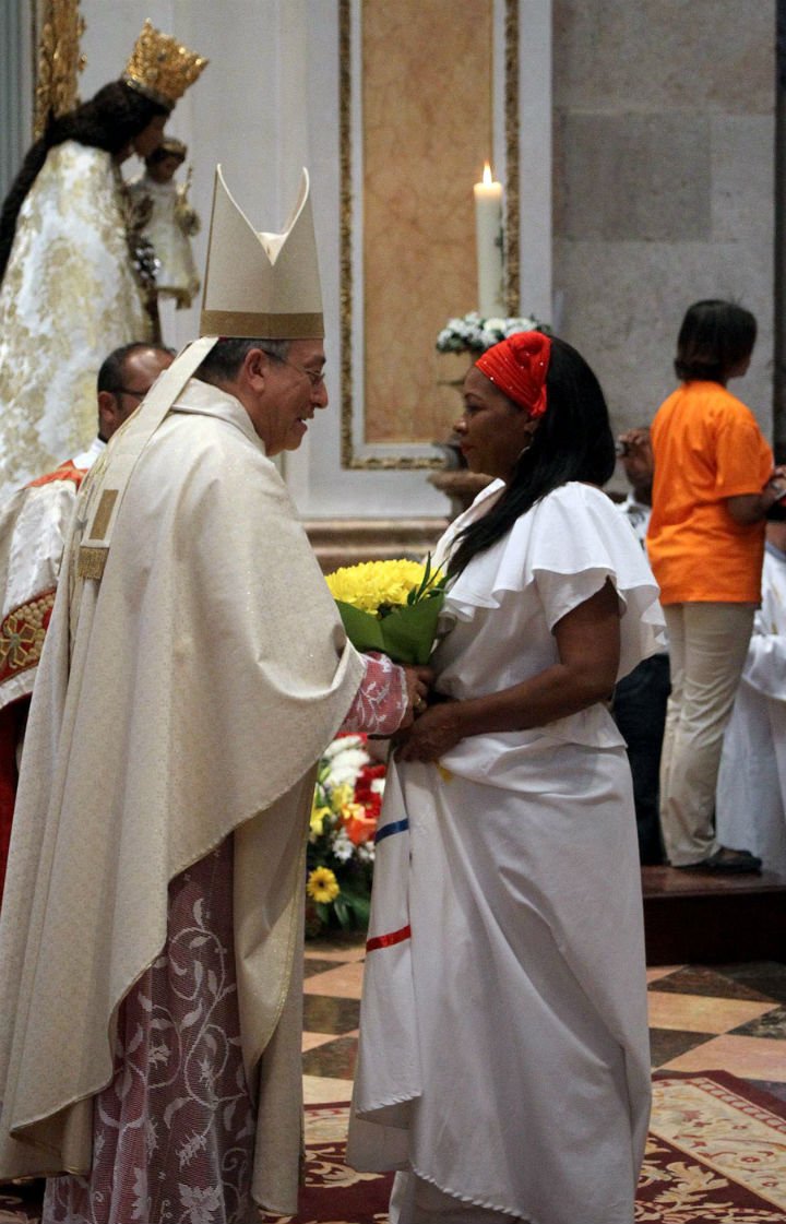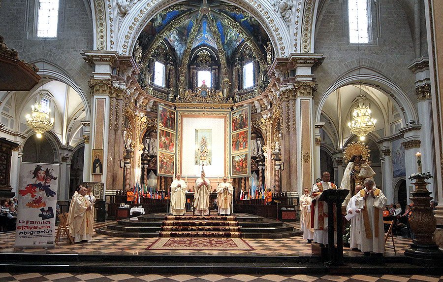 Previamente a la misa, en la que han concelebrado con el purpurado el arzobispo de Valencia y diez sacerdotes, ha sido trasladada la imagen peregrina de la Virgen de los Desamparados desde la Basílica a la Seo y, ante ella, los inmigrantes han realizado una ofrenda de flores, un mapa mundi en representación de todos los países presentes, y varias velas como «luz y símbolo de la Resurrección», además del pan y el vino.