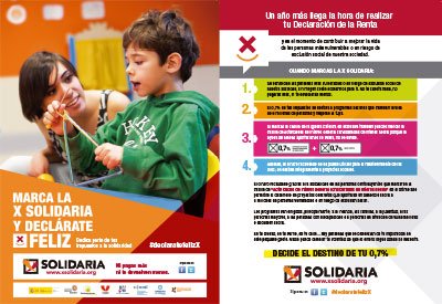 La Fundación Juan Ciudad (FJC) es una de las 469 organizaciones de España sin ánimo de lucro que realiza proyectos sociales gracias a las aportaciones de la casilla de Actividades de Interés Social, y se asigna a través del Ministerio de Sanidad, Servicios Sociales e Igualdad. Este año la Fundación Instituto San José ha colaborado en la imagen de uno de los carteles de la Campaña «X Solidaria».