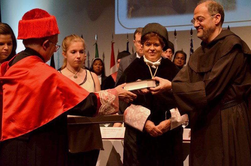 En la ceremonia de investidura, el birrete, que ha sido entregado a Saverio Cannistrà, será donado luego al convento de San José, el primero que fundó Santa Teresa, y la medalla, al convento de la Encarnación, donde murió. Igualmente, ambos conventos recibirán una copa del diploma del doctorado honoris causa.