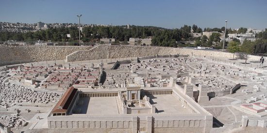 El templo de la portada de mi libro es la imagen de una maqueta. Se llama la Maqueta Holyland de Jerusalén, que fue construida en 1966. Y en el año 2006, esta, la maqueta más grande de una ciudad en el mundo, la recibimos en el museo de Israel y hoy forma parte del complejo del Santuario del Libro. Es la reconstrucción imaginada por un gran profesor de la Universidad Hebrea, Michael Avi Yonah, a partir de las fuentes de lo que llamaríamos «El tercer templo», que fue reconstruido por «Herodes el grande». Se basó en los escritos del gran historiador judío Flavio Josefo, las informaciones que en algunos casos brindan los evangelios, las fuentes rabínicas y lo que sabemos sobre los templos en la época del Impero Romano.