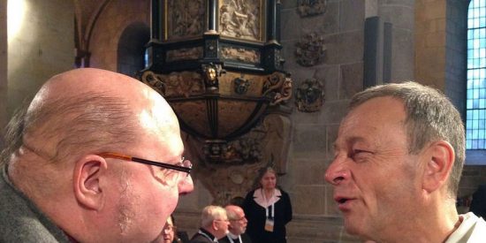 Las palabras del Papa fueron emocionantes para que todos los presentes, especialmente para mi, pues fueron dichas en castellano, seguramente la primera vez que se predicaba en la lengua de Cervantes en esta Catedral. Después, llego el momento de la firma del documento, que fue precedida de una lectura de los cinco compromisos a los que catolicos y luteranos se comprometen a partir de este momento; la bendición final puso fin a la primera parte de la conmemoración.
