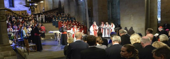 La Catedral estaba llena de representantes de las iglesias y confesiones cristianas alrededor del mundo. De una parte, representantes de iglesias luteranas, anglicanas, ortodoxas y protestantes. De otra, un nutrido grupo de obispos y cardenales de varias partes del mundo que han venido para acompañar al Papa. La música estuvo básicamente a cargo del coro de niñas de la Catedral luterana de Estocolmo.