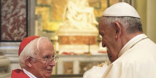 Algunas anécdotas que cuenta ya las conocía directamente de el, pero por respeto a la confianza que tuvo, no he querido referirme nunca a ellas. Recuerdo cuando nos relataba esa cena con el Cardenal Bergoglio antes del cónclave, en la que no se hablaba de nombres, sino de criterios. Y lo que sucedió posteriormente, después de la elección. Lo narraba con mucho cariño, se le notaba la cercanía al Papa Francisco. Así lo cuenta: «Antes del Cónclave invité a comer a casa al cardenal Bergoglio y a otros dos cardenales amigos, para hablar sobre qué tipo de papa elegíamos, no la persona, sino el tipo. Pensaba que deberíamos elegir un nuevo San Francisco que reconstruya la Iglesia de San Damián, que es solo Dios, como nos ha revelado Jesucristo en las bienaventuranzas. Un papa sobre todo de la pobreza, de la paz y la misericordia. Bergoglio y los otros dos cardenales asintieron que ese tipo sería muy bueno…Y añadí una nueva, que el nuevo papa sea un religioso«. Sin duda, se acercó mucho a la diana.