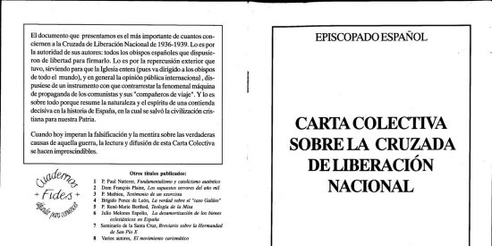 La Carta Colectiva defendía que «mientras en la España marxista se vive sin Dios, en las regiones indemnes o reconquistadas se celebra profusamente el culto divino y pululan y florecen nuevas manifestaciones de la vida cristiana».