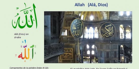 La palabra árabe Allah, hispanizada como Alá, porque la imagen de Dios no es representable para los musulmanes, significa Dios y su etimología es la misma de la palabra semítica El, con la que se nombra a Dios en la Biblia. Los eruditos islámicos definen al islam como: «La sumisión a Dios el Altísimo a través del monoteísmo, la obediencia y el abandono de la idolatría». Los seguidores del islam se denominan musulmanes (del árabe muslim que significa «que se somete»). La palabra Islām, de la raíz trilítera s-l-m, deriva del verbo árabe aslama, que significa literalmente ‘aceptar, someterse’.