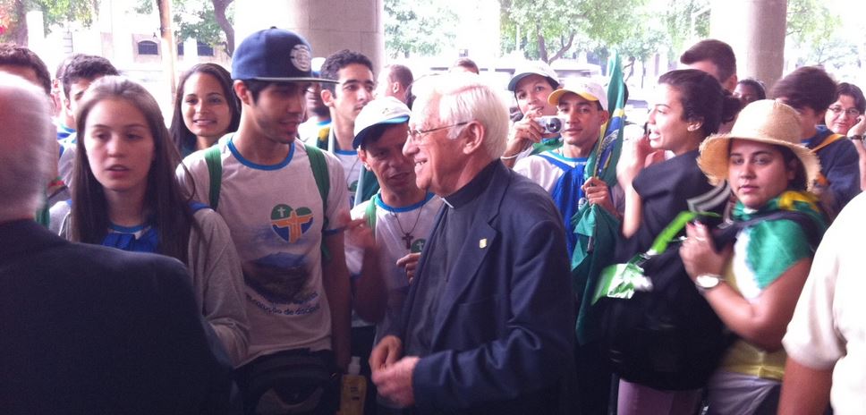 Al salir del hotel de los obispos, el Padre Ángel se tropieza con una grupo de “Papa-boys” brasileiros, con los que comparte la alegría de tener al Papa en Rio. Los chavales no paran de corear: ‘Ista é a xuventú do Papa’.