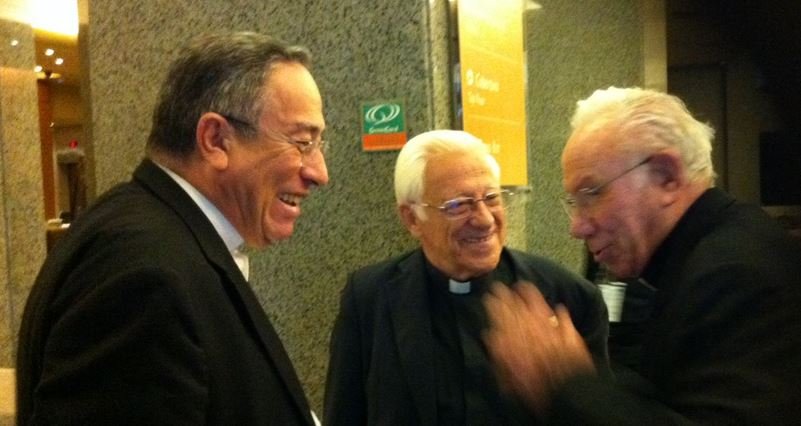 (José M. Vidal, enviado especial a Rio).- El abrazo resonó en el hall del hotel de los obispos-catequistas en Rio. El cardenal hondureño Oscar Andrés Rodríguez Maradiaga se alegró un montón de volver a ver y por sorpresa su amigo, el Padre Ángel, fundador y presidente de Mensajeros de la Paz. “¡Qué bueno volver a verte por aquí, amigo! Porque aquí tenemos que estar apoyando al Papa”.
