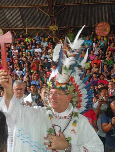 La gran extensión y distancias hasta las diferentes parroquias de la diócesis, a donde se desplaza en lancha, hace que conviva durante semanas con los diferentes pueblos en sus aldeas, participando de su misma forma de vida, compartiendo comidas, bañándose en los ríos o durmiendo en su inseparable red.