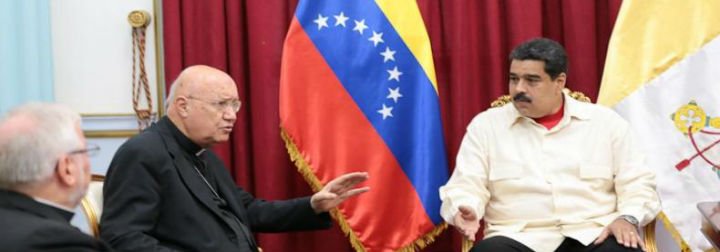 El representante del Gobierno de Nicolás Maduro, Jorge Rodríguez, y la canciller Delcy Rodríguez se reunieron este viernes con monseñor Claudio María Celli, enviado del papa Francisco para el diálogo entre el oficialismo y la oposición venezolana.