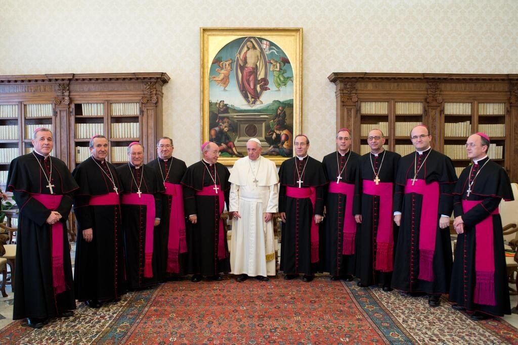 Con inmensa gratitud y alegría los obispos españoles queremos agradecerle esta paternal acogida con ocasión de la visita ad limina apostolorum, precisamente en estos días en que se cumple vuestro primer año de Pontificado, por el que le felicitamos y damos gracias al Señor. Pedimos al Señor que le colme de sus dones y conforte con el amor y obediencia de todos los que formamos la Iglesia de Cristo.