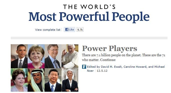 Para crear la lista, que Forbes reconoce que tiene algo de subjetiva, los editores calificaron a los candidatos según cuatro criterios de poder y promediaron las cuatro notas.