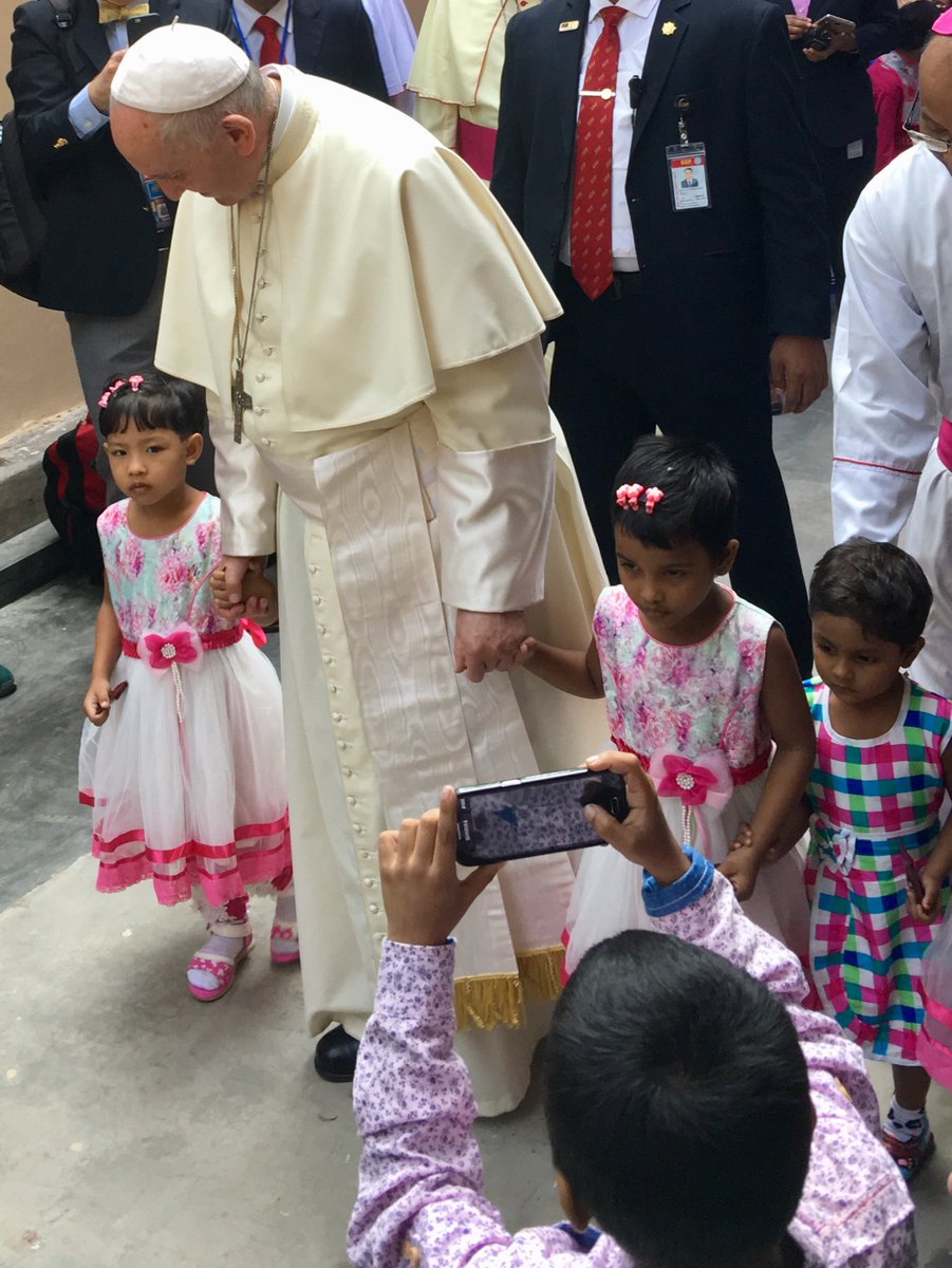 Francisco cierra su visita a Bangladesh con sendas visitas a los pobres, a los consagrados y a los jóvenes. Tres prioridades de su pontificado. En la iglesia del Santo Rosariode Daca se congregaron, en torno al Papa, sacerdotes, seminaristas, religiosos, religiosas y novicias.