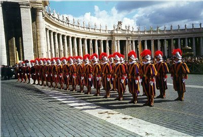 El ejército más pequeño del mundo está compuesto por 110 jóvenes que para ingresar en sus coloridas filas deben cumplir los requisitos de ser suizos de nacionalidad, medir al menos 1.74 cm, tener entre 19 y 23 años, haber pasado por el ejército de su país y tener un título profesional, además de duras pruebas físicas y estar recomendado por un párroco.