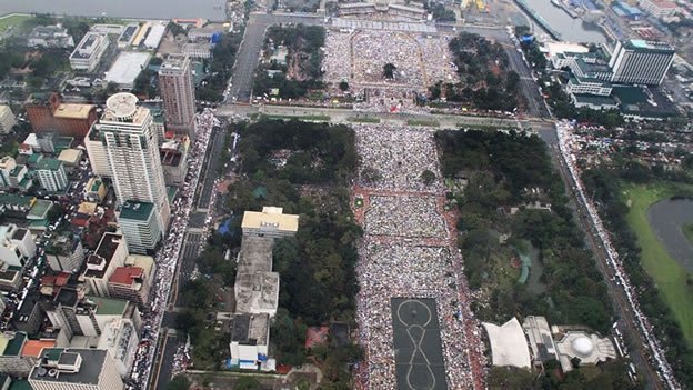 Entre seis y siete millones de fieles en la misa del Rizal Park. Superando, con creces, la de Juan Pablo II. Y bajo la lluvia. Lo nunca visto. Lo jamás logrado en la historia de los Papas o de cualquier otro personaje. Es la fuerza del Papa-imán. Es la magia de un sueño convertido en Papa. Es la mano del Espíritu que sobre él se ha posado.