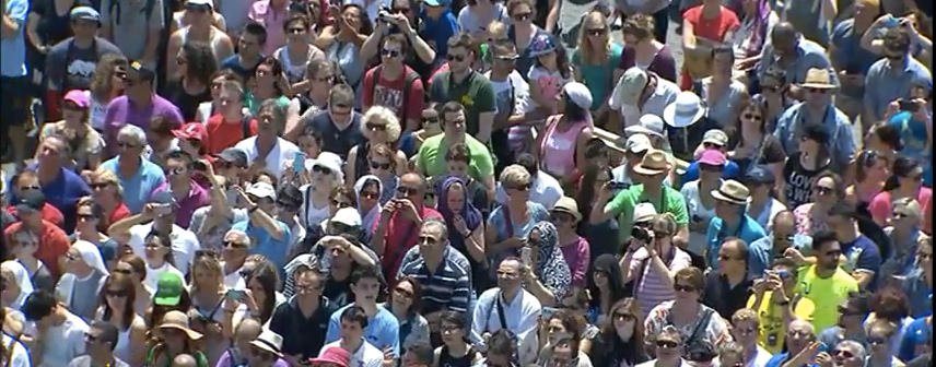 (Jesús Bastante).- En el nombre del Padre, del Hijo y del Espíritu Santo. La mayor catequesis, esa que hacemos cuando nos santiguamos, la que recoge el «mayor misterio» de la fe, según explicó este mediodía el Papa Francisco durante un nuevo y multitudinario Angelus, en el que reclamó a los cristianos «edificar comunidades eclesiales, que sean cada vez más familias, capaces de evangelizar no sólo con las palabras, sino con la fuerza del amor de Dios que habita en nosotros».