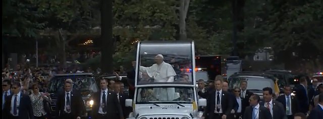 Un impresionante sistema de seguridad rodea el trayecto del Pontífice por la ciudad que nunca duerme. Pero eso no impide que la emoción se desborde. Especialmente a su llegada al Madison Square Garden, donde el Papa se detuvo a bendecir a un pequeño entubado, y a un joven con síndrome de Down y su familia, que rompieron a llorar inmediatamente después del abrazo papal.