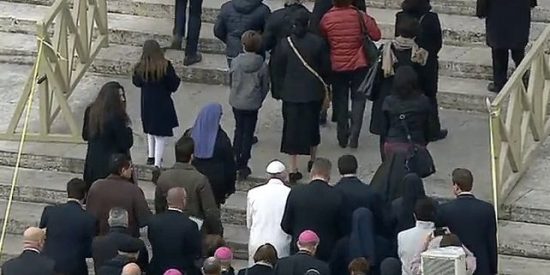 (J. Bastante).- Y lo reconocerán caminando, como Jesús, al lado del pueblo. El Papa Francisco abrió esta fría mañana de Roma el Jubileo de la Curia y del personal del Estado vaticano peregrinando a pie desde el Aula Pablo VI hasta la basílica de San Pedro. Y lo hizo sin atributos, con su abrigo blanco, caminando en silencio junto a los trabajadores de la Santa Sede. No estuvo rodeado de obispos, cardenales u oropeles, sino de varios hombres y mujeres, algunos de ellos acompañados por sus hijos.