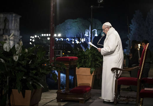 Francisco condenó en el marco del Vía Crucis la indiferencia frente a los necesitados, frente a los que huyen de la guerra como los refugiados, y también el terrorismo. «Oh Cruz de Cristo, aún hoy te seguimos viendo en los fundamentalismos y en el terrorismo de los seguidores de cierta religión que profanan el nombre de Dios y lo utilizan para justificar su inaudita violencia», dijo el pontífice.