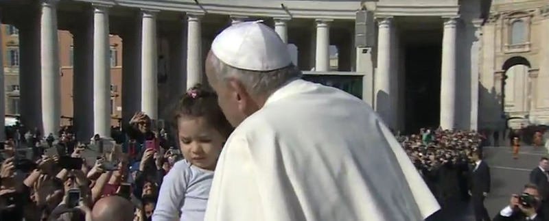 A pesar del clima de miedo y de que la Plaza de San Pedro está blindada, la gente sigue acudiendo en masa a escuchar al Papa de los pobres. Y Francisco, en su intento por normalizar el papado, le dedica mucho tiempo a la gente. Saluda, interactúa, besa a los niños y hasta juego con un globo que alguien le lanza.