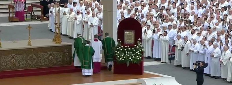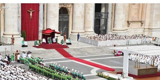 Rodeado de cientos de diáconos permanentes (con su estola cruzada), Francisco celebra una solemne eucaristía.