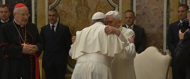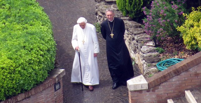(J. Bastante).- «La obediencia a mi sucesor nunca ha sido puesta en discusión». El Papa emérito Benedicto XVI desmiente a su secretario personal, George Ganswein, quien defendió recientemente la polémica teoría de «los dos papas». En una entrevista publicada por el diario La Reppublica al teólogo Elio Guerrero, autor de una biografía autorizada del Papa emérito, Ratzinger destaca su «profunda comunión y amistad» con Francisco.