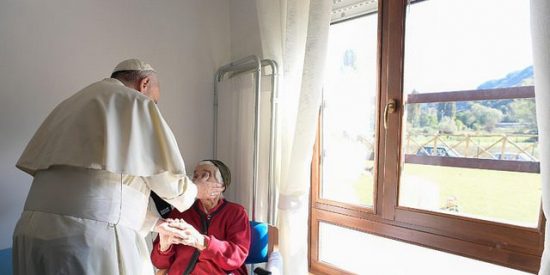 Tras la visita, y antes de regresar a Roma, el Papa acudió por sorpresa a la residencia San Rafael, de Borbona, en Rietti, que acoge a enfermos no válidos o asistidos a domicilio, especialmente ancianos. Bergoglio ha repartido allí abrazos, caricias y confesiones. Y, finalmente, se ha quedado a almorzar con ellos.