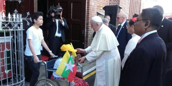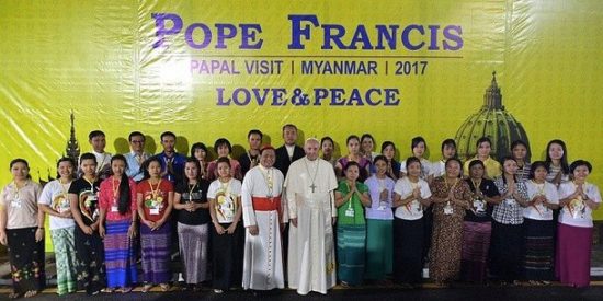 (Jesús Bastante).- Fe, alegría, entusiasmo y juventud. Éstas fueron las claves de las últimas palabras que el Papa Francisco dirigió a los jóvenes de Myanmar, en un multitudinario encuentro en la catedral de Santa María, antes de emprender vuelo hacia la vecina Bangladesh. Atrás quedan tres días de un viaje difícil, marcado por los cambios de agenda, las dificultades técnicas y la tensión con las autoridades birmanas acerca del drama de los ‘rohingyás’.