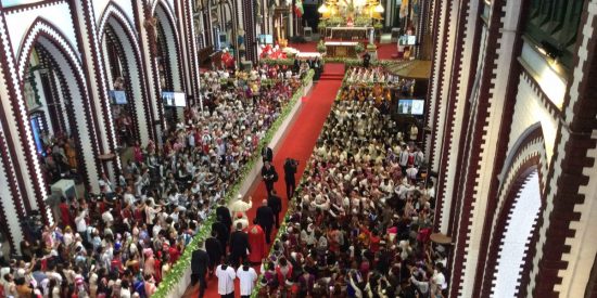 Antes de partir desde Yangon hasta Dacca, Francisco celebró una misa con los jóvenes del país. Una abarrotada catedral esperaba al Papa, y muchos más se quedaron fuera. Tanto es así que la organización hubo de habilitar unas pantallas gigantes para que centenares de fieles, que se quedaron fuera del recinto, pudieran seguir las palabras del Papa.