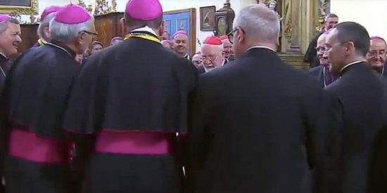 Antes de nada, el Papa saludó a Mons. Bernardino Piñera Carvallo, «el obispo más anciano del mundo», que ha vivido «cuatro sesiones del Concilio Vaticano II. Hermosa memoria viviente».