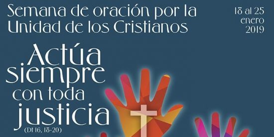 Los textos y materiales para la Semana de Oración por la Unidad de los Cristianos 2019, que tiene como tema: «Actúa siempre con toda justicia» (Cfr. Deut 16,18-20), han sido preparados y publicados conjuntamente por el Consejo Pontificio para la Promoción de la Unidad de los Cristianos y la Comisión Fe y Constitución del Consejo Mundial de Iglesias (CMI). Los mismos que fueron enviados a las iglesias miembros del CMI y a las conferencias episcopales católicas romanas, a las que se invita a que traduzcan y contextualicen o adapten el texto para su propio uso.