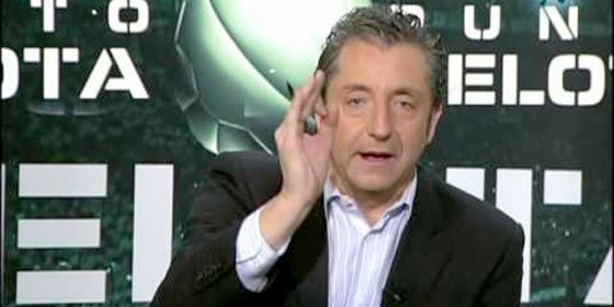 A. E.: ¿Sabes qué pasa? Que él cree que con lo de Real Madrid televisión uno tiene que explicar algo. Lo que tú no sabes es que somos profesionales, y a lo mejor tú solo te debes a unos colores, pero los demás nos debemos a la profesión. Eso para empezar. Tú eres un poco más joven que yo y te lo tengo que explicar un poquito. [Julio] Pulido me lo podrá explicar a mí e incluso Josep [Pedrerol]…