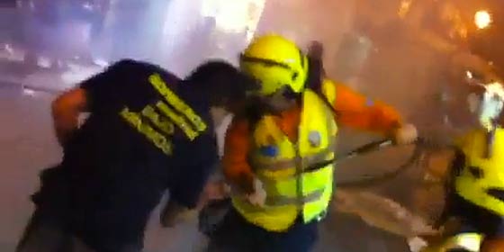 Fueron varios miembros de los servicios de emergencias sanitarios (SAMUR) los que tuvieron que extinguir las llamas con aspersores manuales de agua, lo que provocó la indignación de varios bomberos presentes en las protestas.