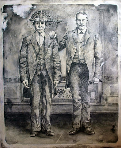 Olía a viejo. A casa usada durante décadas. También a cerebros recién estrenados memorizando estupideces académicas. Y también se oían los ronquidos de los estudiantes que en ese lugar suelen alojarse. Sin embargo, en esta tarde entramos cruzando un amplio zaguán con azulejos sevillanos y un patio sin huerto y sin limonero. Retorcimos la cintura y subimos dos tramos de escalera hasta llegar al primer piso. Al fondo a la izquierda (no hablo del baño) una habitación pequeña nos recibió con los brazos abiertos y fundí mi mano de gas con la mano de gas del artista en cuestión. Luis Camacho absorbido por el aura de los cuadros colgados. Paredes compuestas, engalanadas, sobrias, espeluznantes. Mis ojos volvosos no sabían dónde colocarse. Pero luego de un vibrante encuentro, la paz me dejó, por fin, observar con detenimiento. Después tuve que salir de allí. Necesitaba conocer las obras de los demás. Por lo que anduve indeciso y curioso por todas las habitacioncitas del edificio. También llegué a la planta de arriba, y por último, hasta la misma azotea, dejada allí al aire, sola, casi abandonada y olvidada. Cuando regresé los mismos cuadros de antes permanecían pendientes en los mismos lugares, a las mismas alturas. Uno de ellos es el de arriba, “El paciente rehabilitado”. ¡Demonio de lienzo!, me dije. Uno de los personajes te invita con la mirada. El otro asume. El primero muestra su obra, con la mano sobre el hombro. El otro sigue asumiendo. Voluntad y decisión, por un lado; resignación y misterio del alma, por otro. Gris sobre gris. Sin marco. Tal vez porque le sea innecesario, ya que la obra habla por sí misma. Pintura con cuerpo, con pujanza, con estilo, con fuerza. Dice cosas en silencio. Te aprieta el espíritu, lo encoje. Gris sobre gris mirando al hombre gris que, de pie, observa sin respirar. Las otras obras no consiguieron hacerme temblar. Poca cosa para este endebilísmo entendido en la materia. Solamente vibré en este cuarto de engendros sobre planos verticales. Y no puedo olvidarme de “Convenciendo a la masa”. Como el cuadro de arriba, este último es aterrador. Por lo actual. Por lo visionario, también. No imagino otra forma más directa y cruel de hablar de la alienación que pintando este cuadro. El artista aparece ninguneado, en medio de la habitación, por todas las obras salidas de su mano y que en ese momento le acorralaban. Cuando una obra es realmente buena se eleva sobre el artista. Cobra más relevancia, si cabe, que la propia mente que le dio la vida. Es una realidad engendrando otra realidad. Y la segunda se separa de la primera. La obra artística es, así, desprendida y desagradecida. Pero el artista debe saber y debe entender esta postura. Por mucho que le duela. Ya no es suyo lo que creó. Ya no. Sólo las obras mediocres seguirán perteneciendo al artista, miedosas, incapaces de volar por sí mismas.