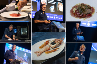 El cocinero Alberto Lozano, desde el Ártico, y el chef Gianfranco Pascucci, desde el mar Tirreno, alertaron sobre los efectos del cambio climático y la contaminación en los océanos. Lozano presentó elaboraciones con foca (algo muy poco común), destacando la importancia de adaptarse a los cambios, y Pascucci conmovió a los asistentes con su plato ‘Mar de plástico’, ilustrando los peligros ambientales. Diego Schattenhofer y Jesús Arrieta presentaron sus investigaciones sobre el proceso enzimático de la lubina, proponiendo nuevas técnicas de conservación. Por otro lado, se destacó la colaboración entre pescadores y cocineros tinerfeños y gallegos, impulsada por el Encuentro, como un ejemplo de sinergias para mejorar las prácticas pesqueras.