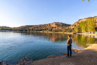 Pero, claro, también están los humanos que, sobre todo cuando llega el calor, se arriman a esta agua privilegiadas. Unos se conforman con admirar el paisaje, pasear por senderos bien señalizados o caminar para descubrir parajes únicos como la amplísima grieta de la Quebrada del Toro, la ya citada cueva de Montesinos, hacer una escapada al castillo de Rochafrida, a la ermita de San Pedro o a la Venta del Celemín, lugares donde, por cierto, dejaron su huella don Quijote y Sancho Panza. Otros humanos preferirán tomar el sol y darse un baño en las frías aguas de las lagunas o practicar algún deporte en ellas.