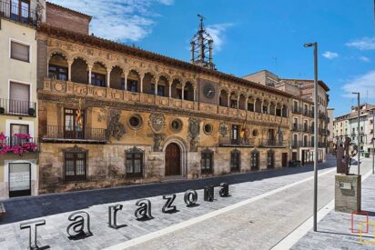 Para aquellos que buscan la exclusividad, nada como detenerse ante la fachada del Ayuntamiento de Tarazona a admirar su riqueza escultórica. Levantado el edificio entre 1557 y 1563 en la Plaza Mayor, fue concebido como Lonja y no fue hasta el siglo XVII que se trasladó hasta aquí la Casa Consistorial. El largo friso tallado en yeso que divide la fachada y data de los mismos años de su construcción, representa con todo detalle la marcha de Carlos V tras su coronación en Bolonia y le roba buena parte del protagonismo. Destacan además tres escudos sobre cueros recortados y dos figuras alegóricas que representan la Justicia y la Sabiduría bajo los dos que enmarcan la puerta principal. El tercer escudo, el de Tarazona, da seguimiento a tres personajes hercúleos que aluden a la fundación de la ciudad.