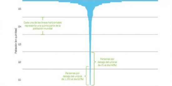 El gráfico llamado ‘la copa de champán’, y elaborado por UNICEF, pone de manifiesto que la mayor parte de los ingresos mundiales se concentra en manos de los más ricos, mientras que la inmensa mayoría de la población posee un porcentaje de los ingresos comparativamente escaso, constituyendo el «pie» de la copa.