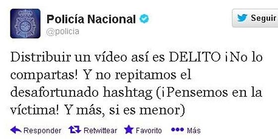 La Policía, a través de su perfil de Twitter, @policía, había alertado de la difusión de este material en la Red