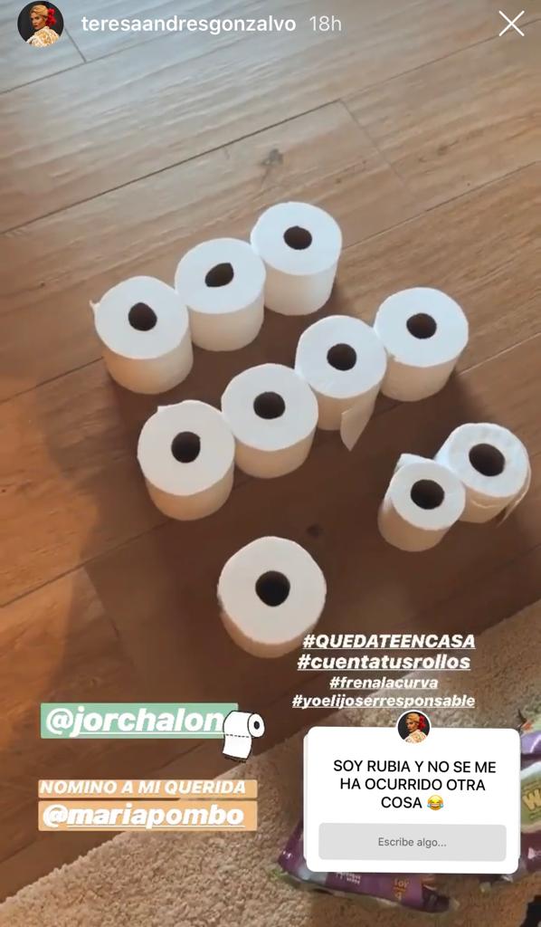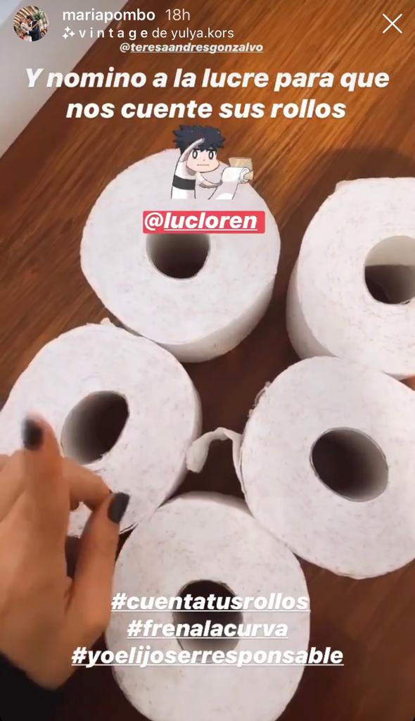 María Pombo también contó sus rollos al tiempo que reconocía que «acepto donaciones porque los Castellano Pombo no han ido a la compra, como era de esperar y tenemos la friolera de cinco rollos en total; eso sí, son de los gorditos, suaves y huelen bien, o sea que cuentan por dos».
