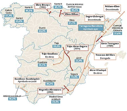 Y el Trasvase, que no sólo riega parte de la provincia de Murcia, sino también Alicante y Almería, y hasta de Hellín, en la propia Albacete, fue concebido en la República, construido por Franco, culminado por UCD en la democracia, y administrado por el PSOE durante su puesta en marcha: era y es una verdadera obra nacional. Y por eso, claro, hay que cargársela.