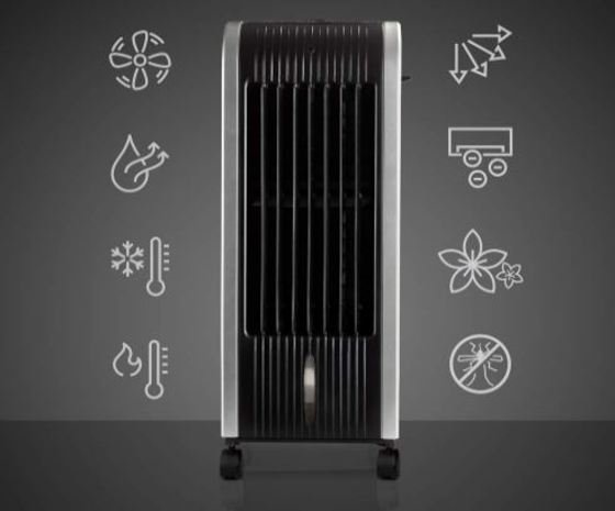 - Este climatizador funciona como ventilador, humidificador y purificador combatiendo rápidamente las altas temperaturas del verano. Gracias a su depósito extraíble de 5 litros con cuatro contenedores de hielo, el flujo de aire será de lo más frío y refrescante.