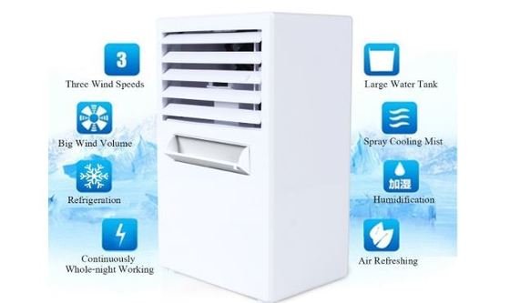 - Ventilador de aire, climatizador evaporativos pequeño con función de humidificación purificador, 3 Niveles de potencia, función temporizador, enfriamiento, ventilación