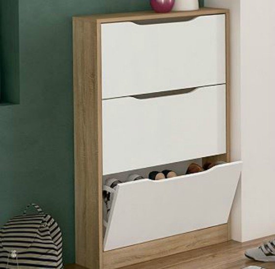 - Zapatero con tres compartimentos para albergas hasta 6 pares de zapatos.